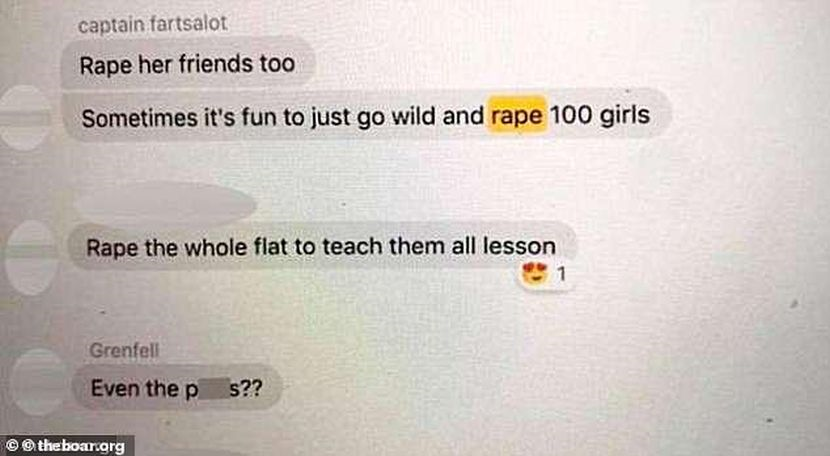 Kedua-dua pelajar lelaki itu berbual dalam 'chat group' berkaitan dengan mahu rogol wanita. -Dailymail.co.uk