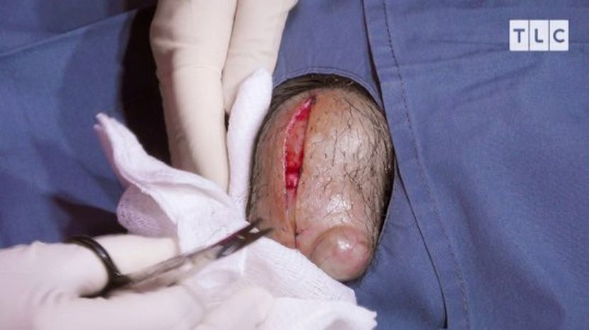 Ketika Lee menoreh kulit pada sista itu, dia menjelaskan: "Ada belon besar di dalamnya, saya perlu mengeluarkannya secara keseluruhan."