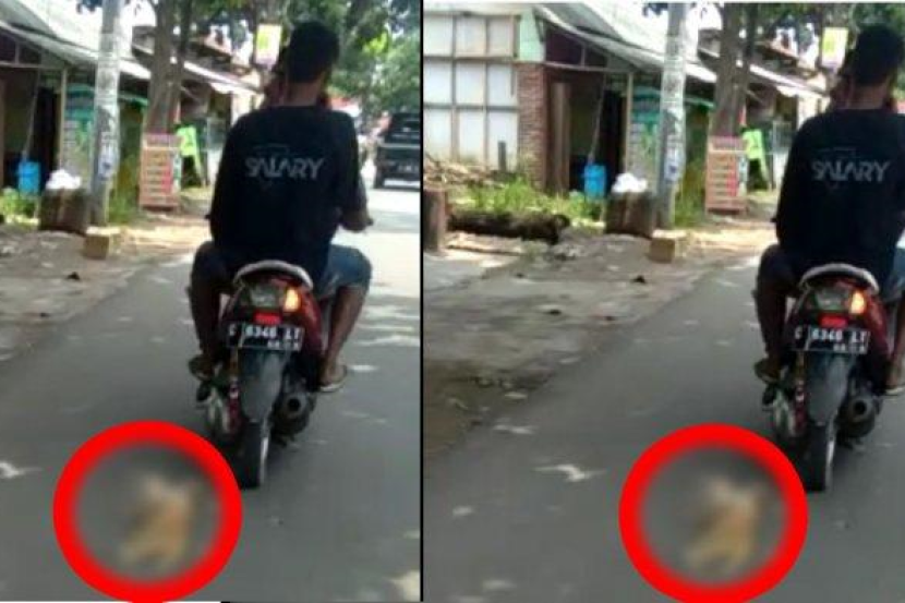 Perbuatan penunggang motosikal dan pemboncengnya dirakam oleh pemandu kereta iaitu Diefie Hafiez Maufalia ketika melalui kawasan Wiradesa di wilayah itu.