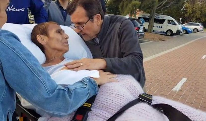 SEORANG wanita yang sedang menunggu saat kematian dibawa ke pantai dengan katil hospital bagi membolehkannya melihat pemandangan matahari terbenam untuk kali terakhir.