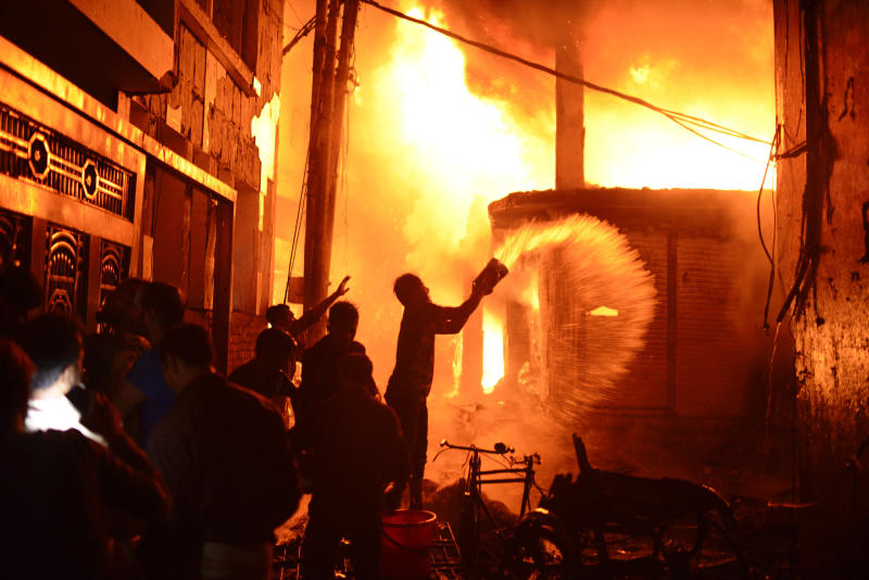 Pasukan bomba ketika berusaha memadamkan api di Chawkbazar. - AP