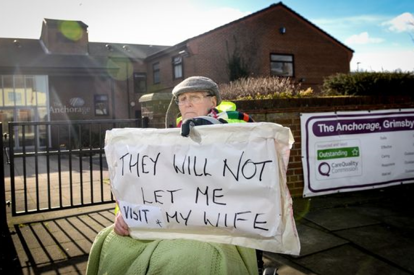 Dennis Daniels mula membuat bantahan di luar rumah kebajikan di Grimsby di England pada Selasa lalu, memberitahu bahawa pengurus rumah tersebut melarangnya berjumpa isterinya, disebabkan dia terlalu bising dan mengganggu.