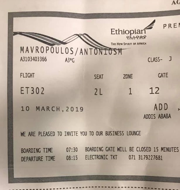 Tiket penerbangan Mavropoulus yang dimuatnaiknya di Facebook.