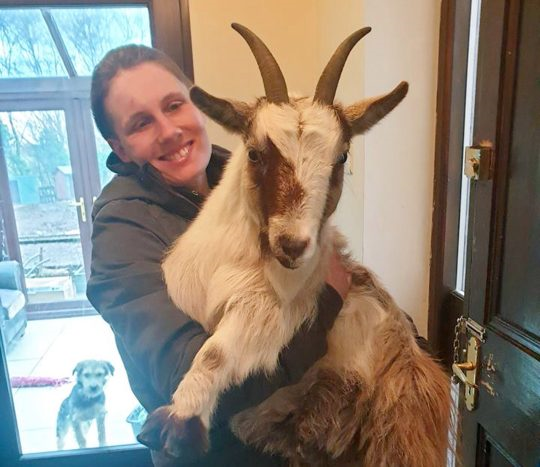 Fields telah membawa kambing itu keluar dari komuter, sebelum menyerahkan Belle kepada pemiliknya.