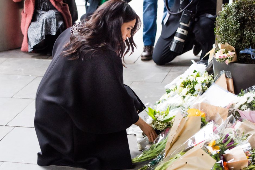 Kehadiran Meghan tetap mencuri tumpuan walau mengenakan pakaian hitam dengan subang yang dihadiahkan Perdana Menteri New Zealand, Jacinda Ardern ketika pasangan itu melawat negara berkenaan tahun lalu.