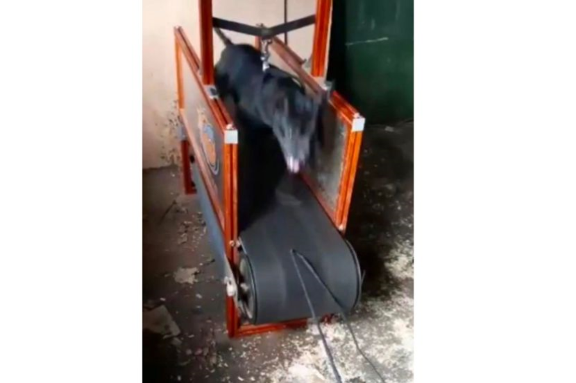 Satu lagi video menunjukkan seekor anjingnya dipaksa berlari di atas treadmill, dengan lehernya diikat.