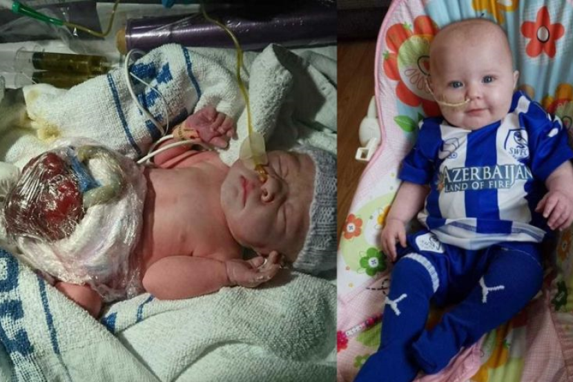 Baru-baru ini, seorang bayi yang dilahirkan cacat dengan usus berada di luar perut menyambut ulang tahun kelahiran pertamanya.