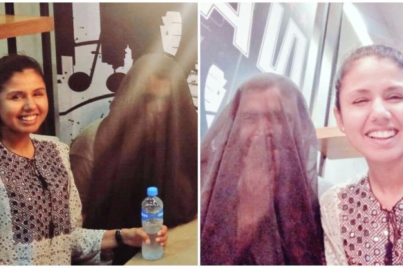 Gambar suaminya yang memakai burqa bersama pengantin perempuan ketika pasangan itu makan malam tular di media sosial.
