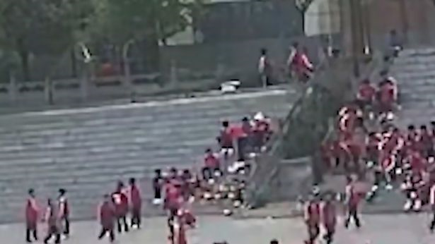 Rakaman juga menunjukkan beberapa pelajar lain kemudian mengusung Qi dibawa ke bahagian perubatan.