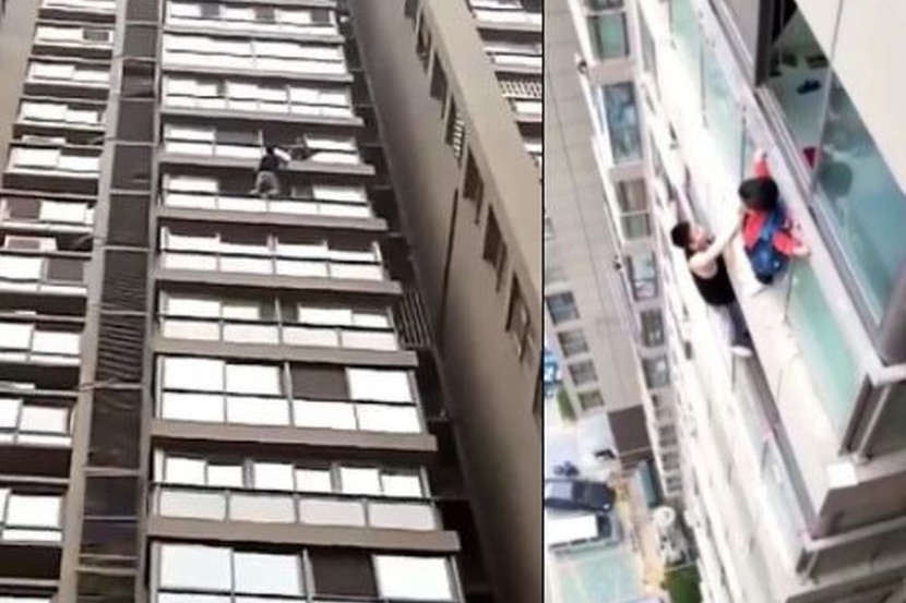 AKSI seorang kanak-kanak lelaki berusia lima tahun yang memanjat bahagian luar tingkap bangunan menjadi tular.