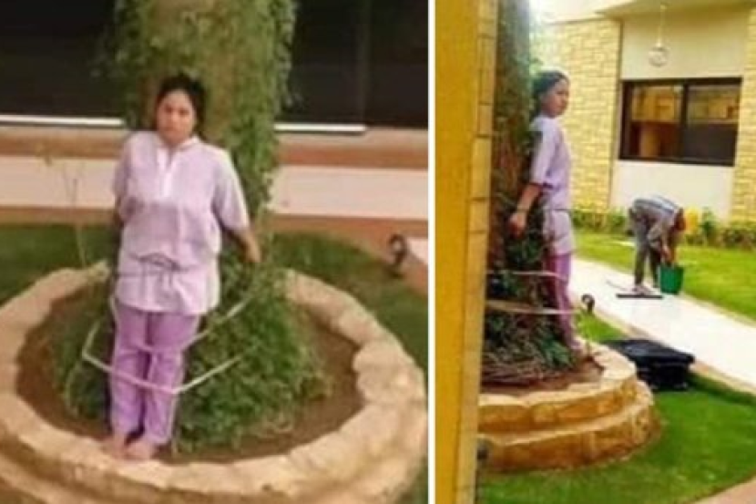Salah seorang rakan sekerja pembantu rumah itu mengambil gambar Lovely diikat pada sebatang pokok di sebuah taman dalam perkarangan rumah majikannya pada 9 Mei lalu.
