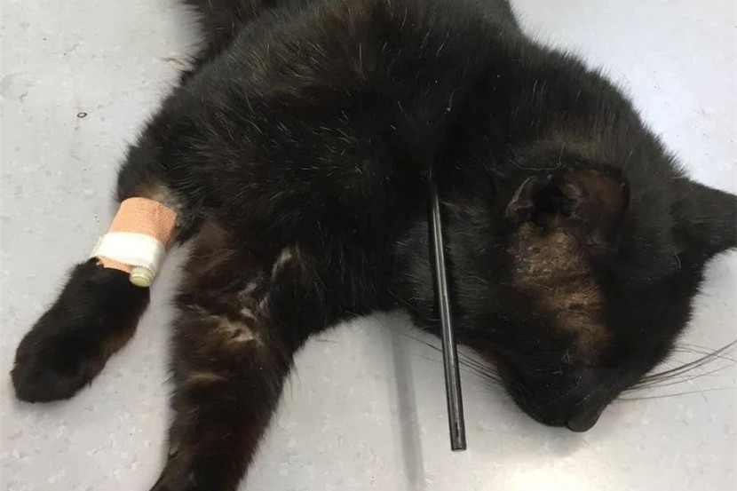 SEEKOR kucing hitam mengalami kecederaan akibat ditembak dengan anak panah. Kucing yang diberi nama Robin itu ditemui orang ramai di Leicestershire, Glenfield, England. Cedera dengan anak panah yang menembusi bahu, kucing itu terpaksa dibawa ke klinik haiwan untuk menjalani pembedahan. "Kucing itu bernasib baik. Sangat ajaib, ia tidak mengalami kecederaan dalaman," ujar petugas yang menguruskan haiwan itu. Ujar petugas itu lagi, Robin perlu dibedah untuk membuang anak panah berkenaan dan kini sudah kembali pulih. - The Indipendent.