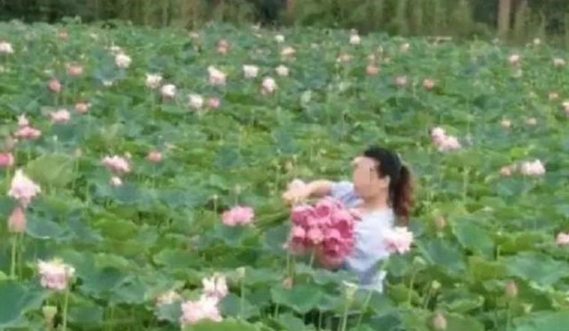 Tanpa segan-silu, bunga-bunga teratai dipetik pelancong. Foto ANN/South China Morning Post