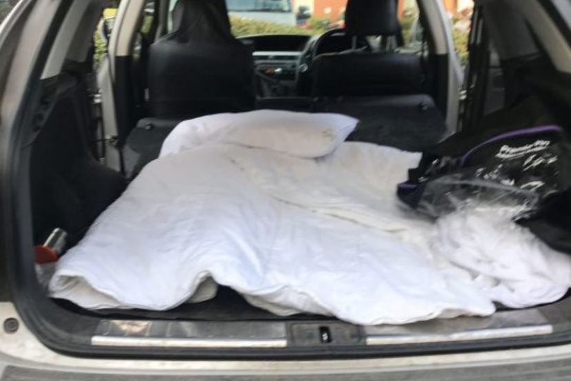 Malah anak mereka, Fraser,23, juga terpaksa berbuat demikian dan ruang belakang kenderaan mereka dijadikan seperti tilam.