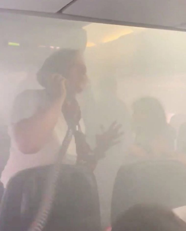 PENUMPANG yang diarahkan untuk mengosongkan kabin pesawat yang dipenuhi asap dikecam kerana berselfie dan merakam video kejadian itu.