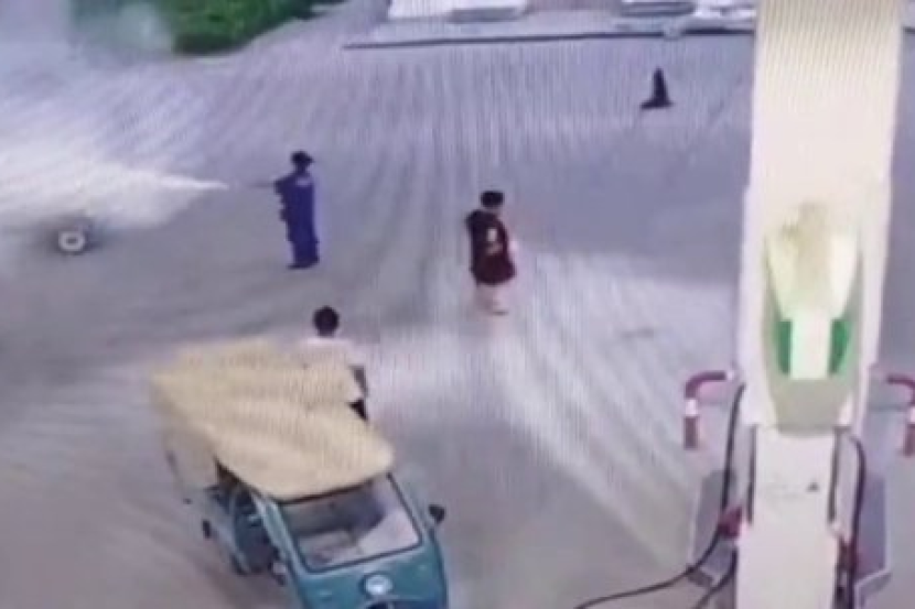 Rakaman CCTV dari bandar Tianmen di wilayah Hubei, China menunjukkan Li, 66, meletakkan beca berenjin miliknya di tepi pam bahan api itu awal bulan ini.