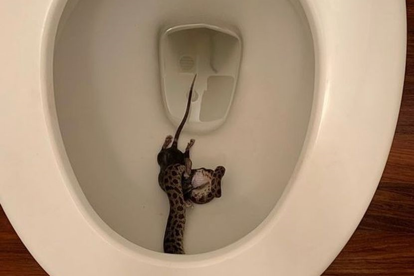 SEORANG wanita dikejutkan dengan penemuan seekor ular sawa sedang membaham seekor tikus di dalam mangkuk tandas di rumahnya.