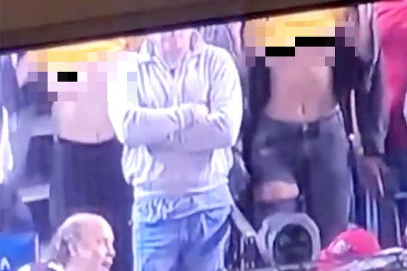 Rakaman menunjukkan seorang wanita berpakaian kuning mengangkat baju sebelum diikuti oleh dua rakannya, sehingga mendapat sorakan ramai.