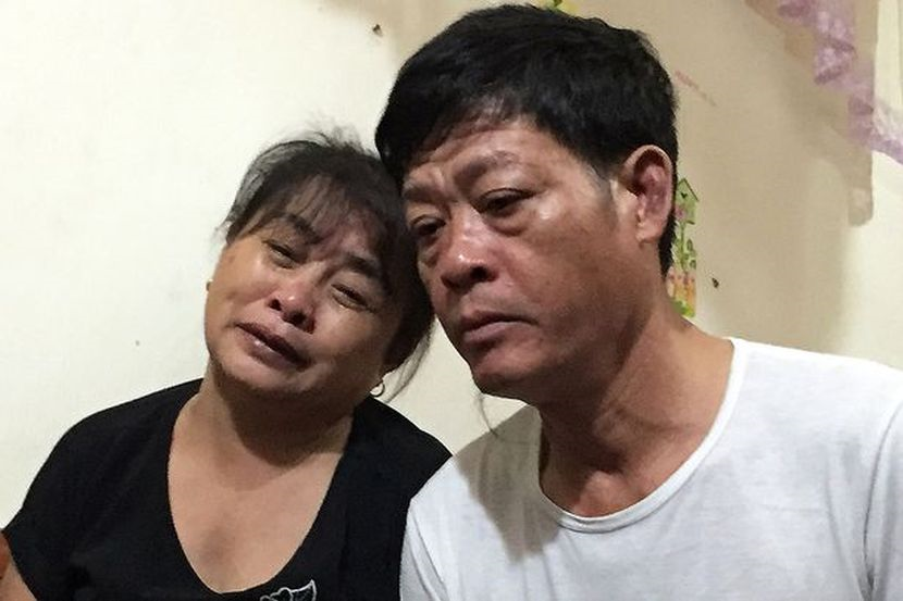 Ibu dan bapa Tra, Pham Van Thin (kiri) dan Nguyen Thi Phong sedih dengan berita kematian anak mereka. Foto EPA-EFE/REX