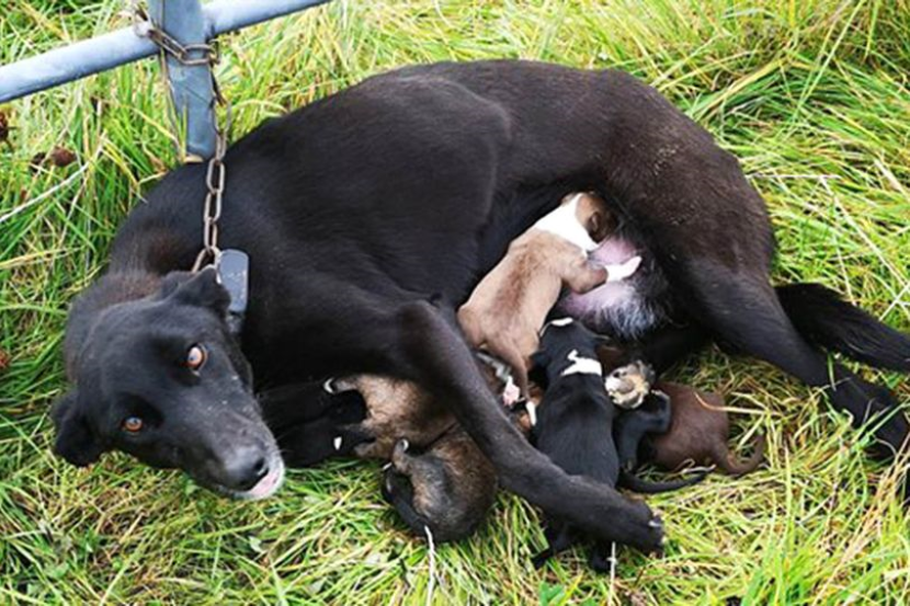 Begitulah yang dapat menggambarkan situasi yang dihadapi seekor ibu anjing malang.