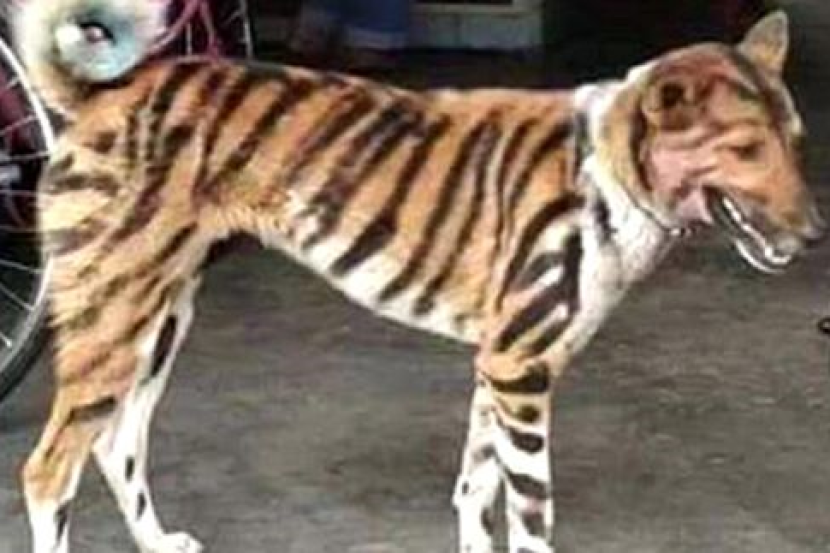 SEORANG petani mewarnakan badan anjing miliknya menyerupai belang di badan harimau.