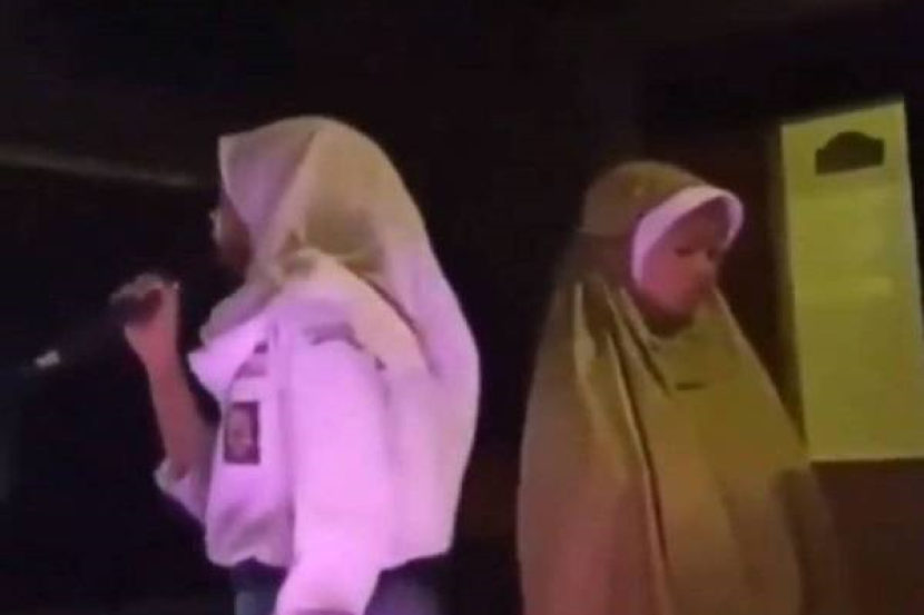 Dalam video tersebut, kelihatan pelajar berkenaan mengenakan telekung sementara seorang rakannya yang berpakaian seragam sekolah pula memegang mikrofon.