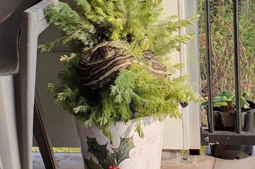 SEORANG wanita terkejut apabila mendapati seekor ular sawa sepanjang 10 kaki melingkar di pokok Krismas di balkoni rumahnya.