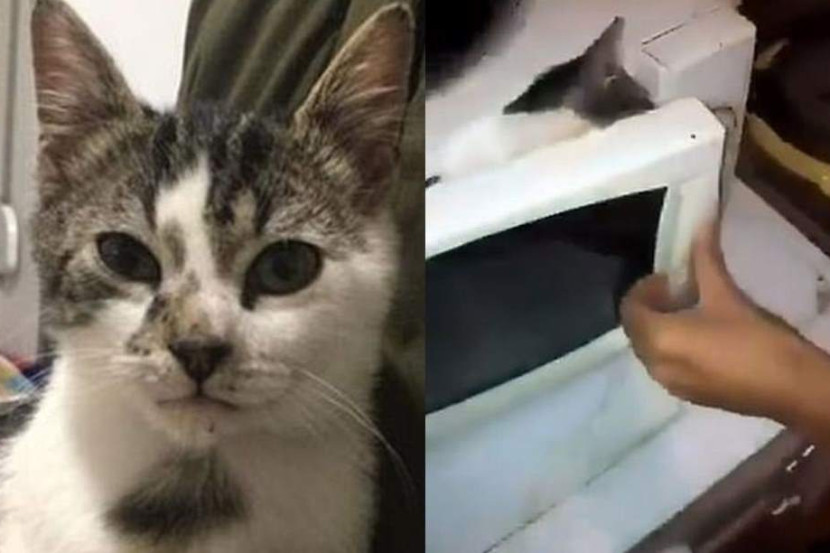 Dalam satu rakaman tular, remaja berkenaan memanggang seekor kucing di dalam ketuhar.