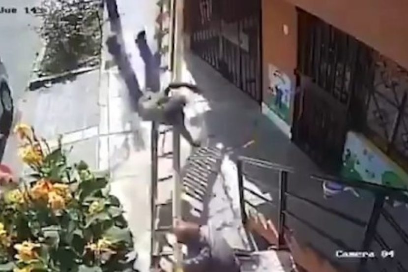 Menerusi rakaman kamera litar tertutup (CCTV), kelihatan tangga yang dinaiki Fernández Sanchez, 46, disandarkan pada sebuah bangunan tiga tingkat di Lima, Peru untuk memudahkannya melakukan kerja mengecat.