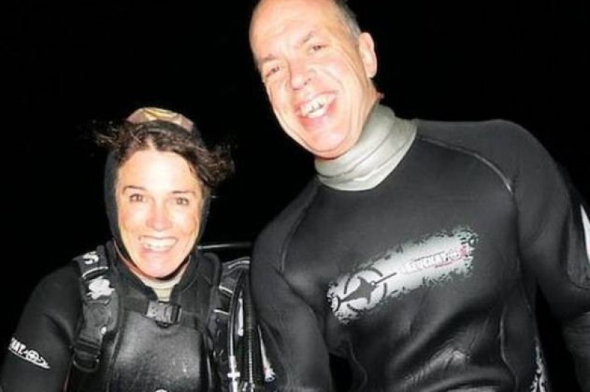 Johnson (kanan) dikhuatiri dibaham jerung ketika sedang menyelam manakala isterinya, Karen dikejarkan ke hospital akibat mengalami kejutan. Foto: Esperance Dive Club