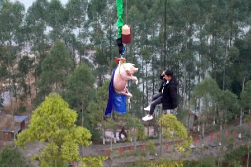 SEBUAH taman tema di China menimbulkan kemarahan orang ramai selepas didakwa melakukan kekejaman haiwan, dengan 'memaksa' seekor babi membuat terjunan bungee (bungee jumping).