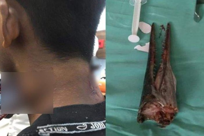 Pasukan perubatan di Makassar berjaya menarik keluar muncung ikan todak dari leher Idul.
