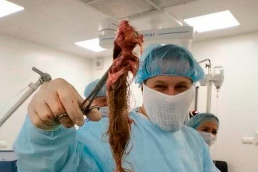 Menurut doktor berkenaan, Tatiana Shavrak, gumpalan rambut yang dikeluarkan daripada ovari wanita berusia 30 tahun itu berukuran lima inci panjang dan telah 'menghuni' bahagian itu sejak lahir.