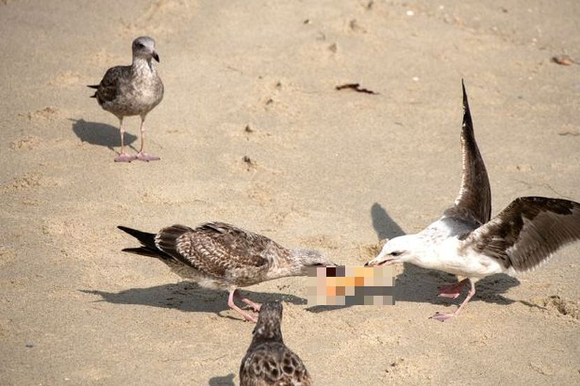 Namun, sekumpulan burung camar yang sedang bergaduh kerana merebut sesuatu menarik perhatiannya.