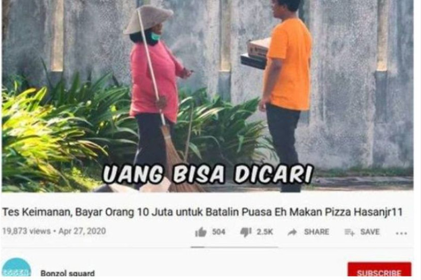 PERSONALITI Youtuber Indonesia, hasanjr11 memohon maaf kepada masyarakat beragama Islam di negara itu susulan tindakannya menawarkan wang Rp10 juta (RM2,845) kepada individu yang sanggup membatalkan puasa. Menurut hasanjr11, dia mengakui tindakan tersebut adalah seratus peratus kesalahannya yang tidak peka dengan sensitiviti agama Islam. "Assalamualaikum wbt, saya hasanjr11, saya mahu meminta maaf kepada seluruh masyarakat atas salah satu video Youtube saya yang tidak peka, saya mengaku itu seratus peratus kesalahan peribadi. "Saya memang salah, hal ini menjadi pembelajaran bagi saya untuk tidak membuat kesalahan lagi dan memperbaiki diri saya," demikian katanya dalam satu video yang dimuat naik di Instagram miliknya @hasanjr11 Sebelum ini, hasanjr11 telah memuat naik satu video di Youtube menunjukkan dirinya telah menawarkan makanan kepada orang ramai bagi menguji sejauh mana tahap keimanan dan materialistik seseorang. Sebagai ganjaran, beliau berjanji akan memberi wang bernilai Rp10juta kepada individu tersebut. Tindakan tersebut mengundang kecaman ramai yang menyifatkan perbuatan hasanjr11 adalah satu penghinaan dalam Islam. Video kontroversi tersebut kemudian telah dipadamkan dari saluran YouTube miliknya. - Tribunnews