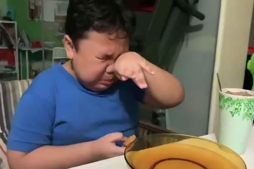 Dia pada mulanya menangis kerana memikirkan ibunya mahu melakukan 'prank', namun terkejut apabila mendapati makanan kegemarannya berada di dalam bungkusan, sebelum terus memberikan pelukan buat ibunya.