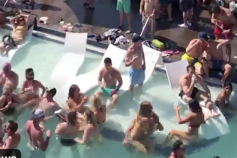 Menerusi satu klip video yang dirakamkan di pantai Osage, menunjukkan ratusan pengunjug menikmati minuman keras di kolam renang.