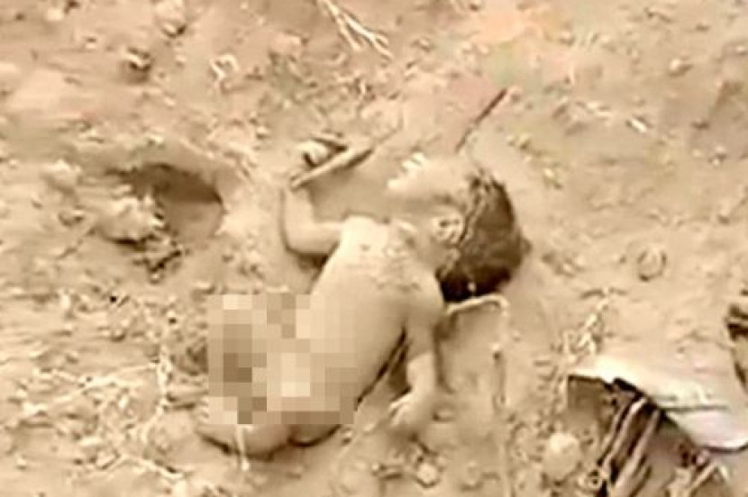Ditarik keluar dengan berhati-hati, penduduk kampung terkejut melihat bayi itu masih bernyawa.