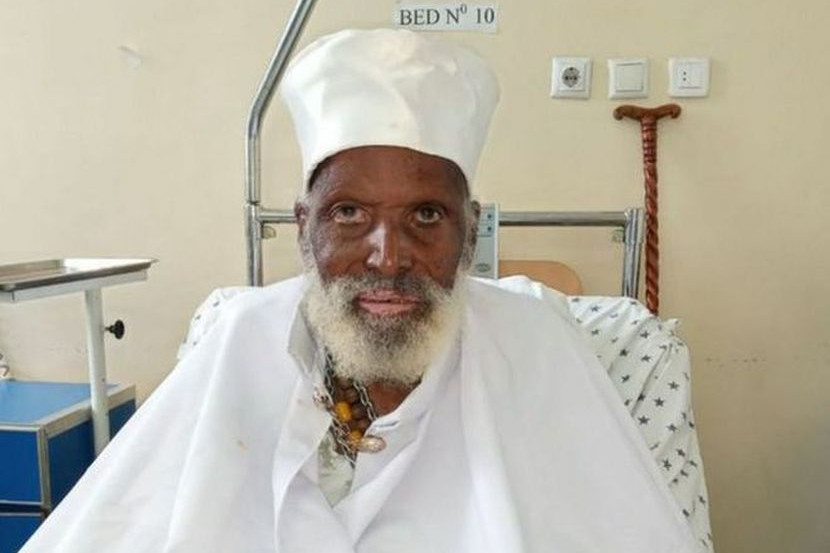Aba Tilahun yang merupakan biarawan Kristian Ortodoks Ethiopia, kini dijaga di rumah oleh cucunya.