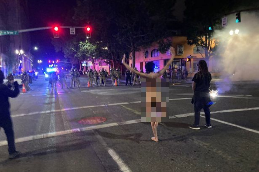 POLIS Amerika Syarikat (AS) yang dikerah ke satu lokasi tunjuk perasaan dikejutkan dengan kehadiran seorang wanita dalam keadaan tanpa seurat benang. Wanita yang tidak dikenali itu bertindak duduk di atas jalan sambil melakukan yoga dalam usaha untuk mengusir polis dari lokasi kejadian. Ia berlaku di Portland, Oregon pada awal pagi Sabtu. Kejadian itu kemudiannya menjadi tular setelah seorang wartawan, Donovan Farley berkongsi foto wanita tersebut menerusi Twitter. Dalam beberapa foto yang dimuat naik, wanita itu kelihatan sedang berdiri sebelum duduk dalam posisi yoga, beberapa meter dari barisan anggota polis. Dalam protes itu, polis didakwa turut melepaskan tembakan kepada beberapa individu. Kata saksi, polis kemudiannya berlalu pergi dari lokasi wanita itu berbogel. Terdahulu, timbul ketegangan di Portland selepas presiden AS, Donald Trump mengarahkan beberapa monumen yang disifatkan ramai sebagai 'teater politik' agar dilindungi. - Daily Star. Nak macam-macam info? Join grup Telegram mStar!