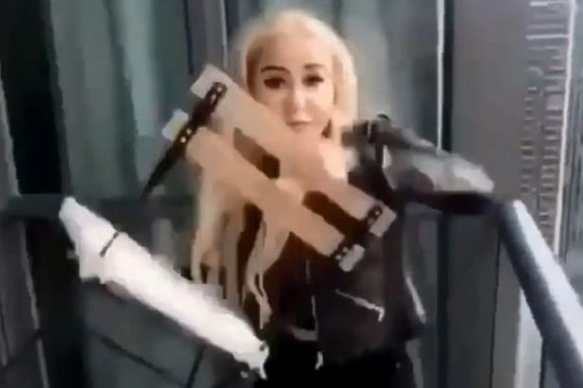 Rakaman menunjukkan influencer yang ketika itu berusia 19 tahun, memandang tepat ke arah kamera sebelum mengangkat sebuah kerusi kayu dan mencampakkannya ke bawah dari balkoni.