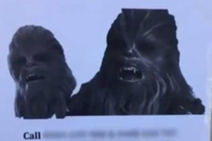 SEORANG lelaki di Australia meletakkan poster iklan di sekitar sebuah bandar bagi meminta orang ramai menghubungi bekas kekasihnya dan menyamar sebagai Chewbacca, watak dalam filem Star Wars.