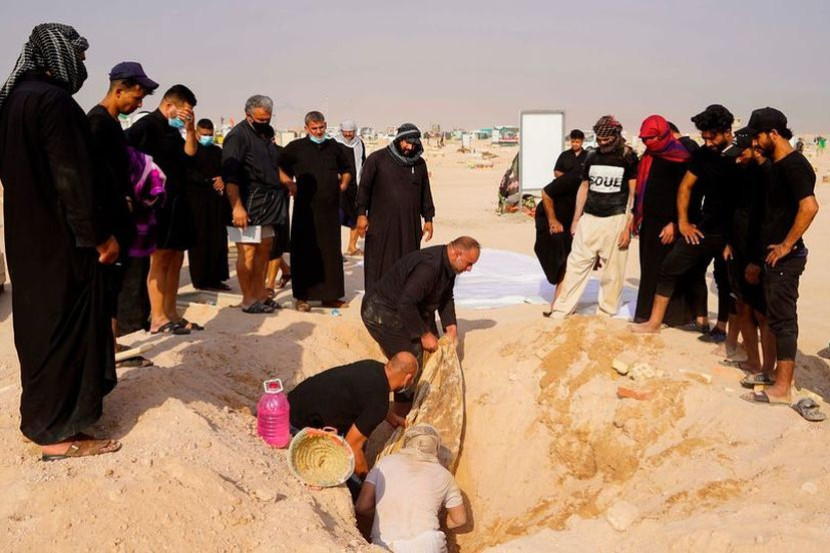 Kawasan luas di sebuah padang pasir luar kota Najaf dijadikan sebagai 'perkuburan Covid-19' di mana semua mangsa yang meninggal dunia akibat wabak berkenaan dikebumikan di situ.