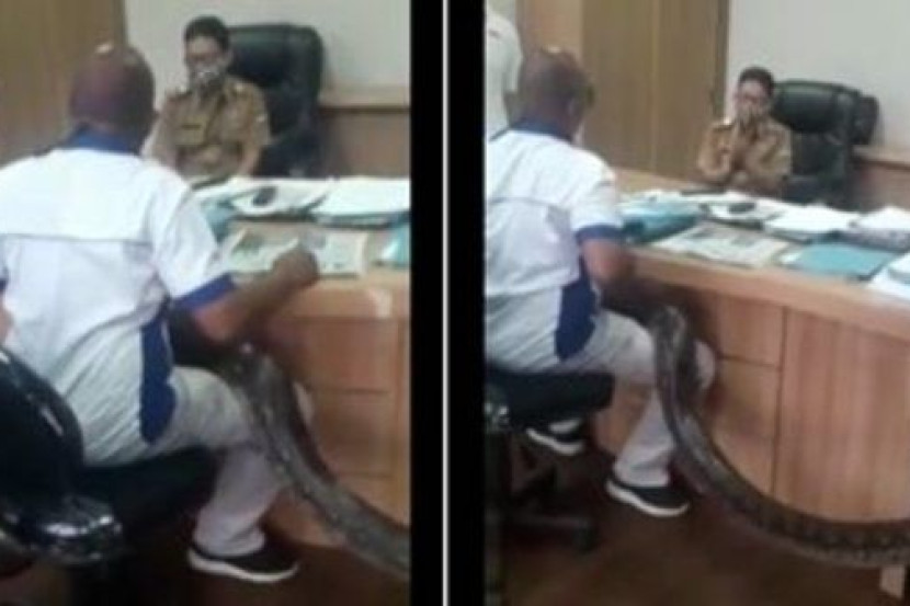Dalam kejadian di Bandung Barat, Indonesia, lelaki itu dituduh mengancam seorang pegawai kerajaan setelah dia membawa ular sawa besar ke pejabat Jabatan Kerja Raya dan Perumahan Awam di wilayah tersebut.