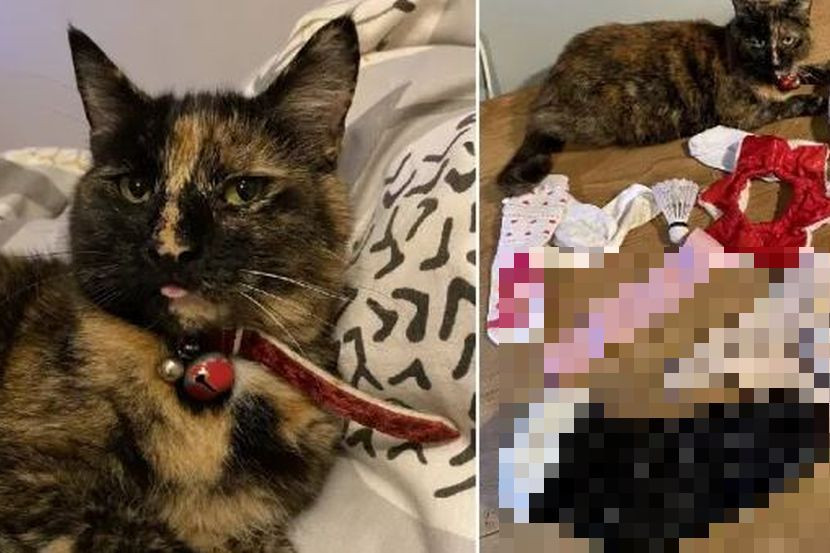 SEEKOR kucing mempunyai tingkah laku yang pelik apabila suka mencuri seluar dalam orang lain dan membawanya pulang ke rumah.