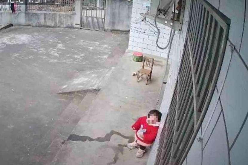Kanak-kanak berkenaan kekal berada di tepi pintu dan melihat ke arah kamera, seolah-olah menunggu ibu bapanya untuk memberikan respons.