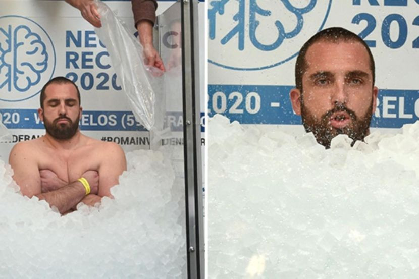 SEORANG warga Perancis, Romain Vandendorpe berjaya memecah rekod dunia dengan duduk di dalam kiub ais dalam masa paling lama.