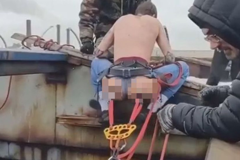 Video itu dikongsikan di saluran Telegram dengan kapsyen: "Penggemar sukan lasak Saint Petersburg ingin merasai seluruh sensasi kesakitan". - Dailystar