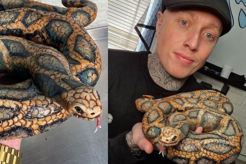 Menerusi satu foto, Ben bergambar bersama kek ular di tangannya.