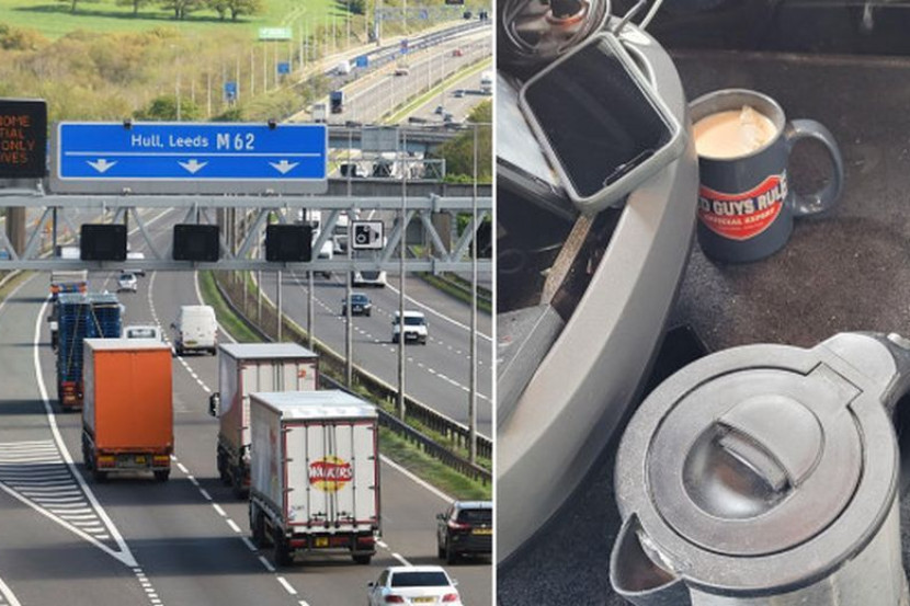 Namun seorang pemandu kereta di England ini bukan sahaja ditahan kerana kesalahan berkenaan, malah sedang menyiapkan secawan teh ketika sedang memandu!